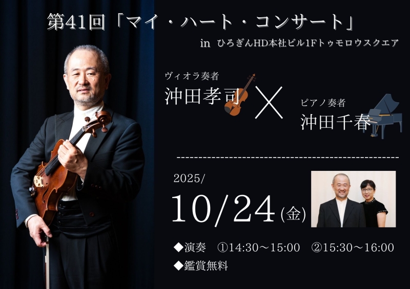 広島を中心に幅広く活躍する、ヴィオラ奏者・沖田孝司様とピアノ奏者・沖田千春様を迎え開催致します。