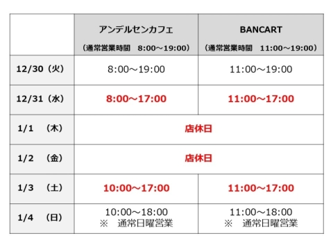 年末年始の営業につきまして、誠に勝手ながら表のとおり変更させていただきます。ご来店…
