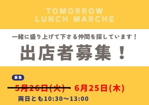 「トゥモロウランチマルシェ」出店者募集中!2026年5月26日(火)〜2026年6月25日(木)
